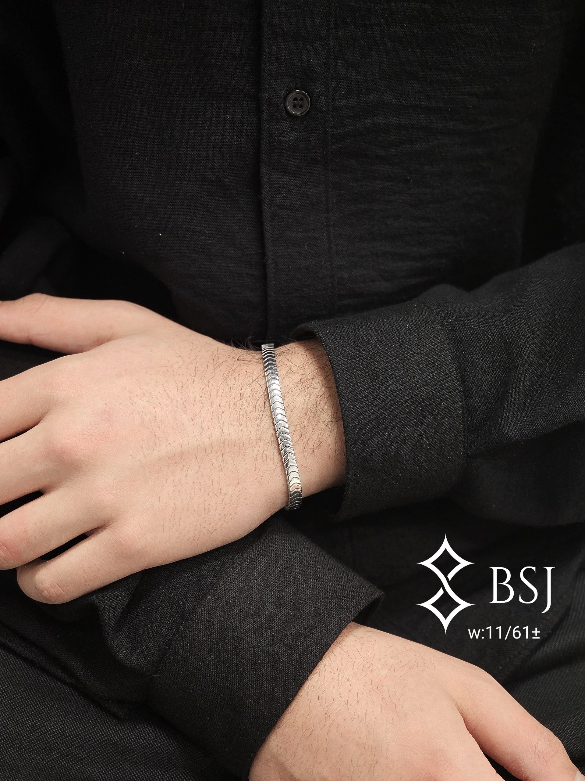 دستبند نقره مردانه طرح جناقی کد D1M7