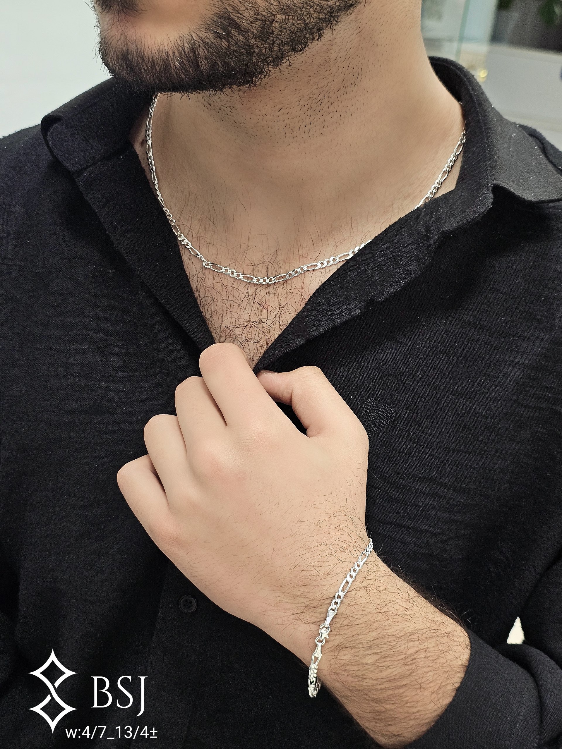 ست زنجیر و دستبند نقره مردانه طرح فیگارو