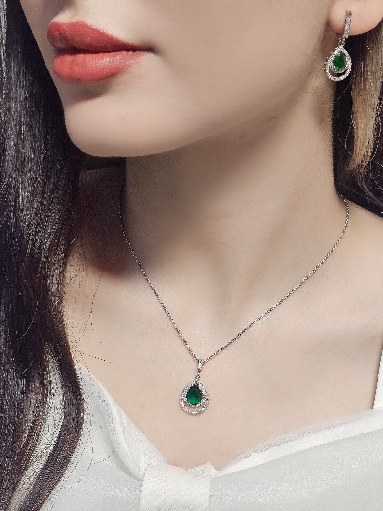 سرویس نقره جواهری زنانه طرح امرالدکات