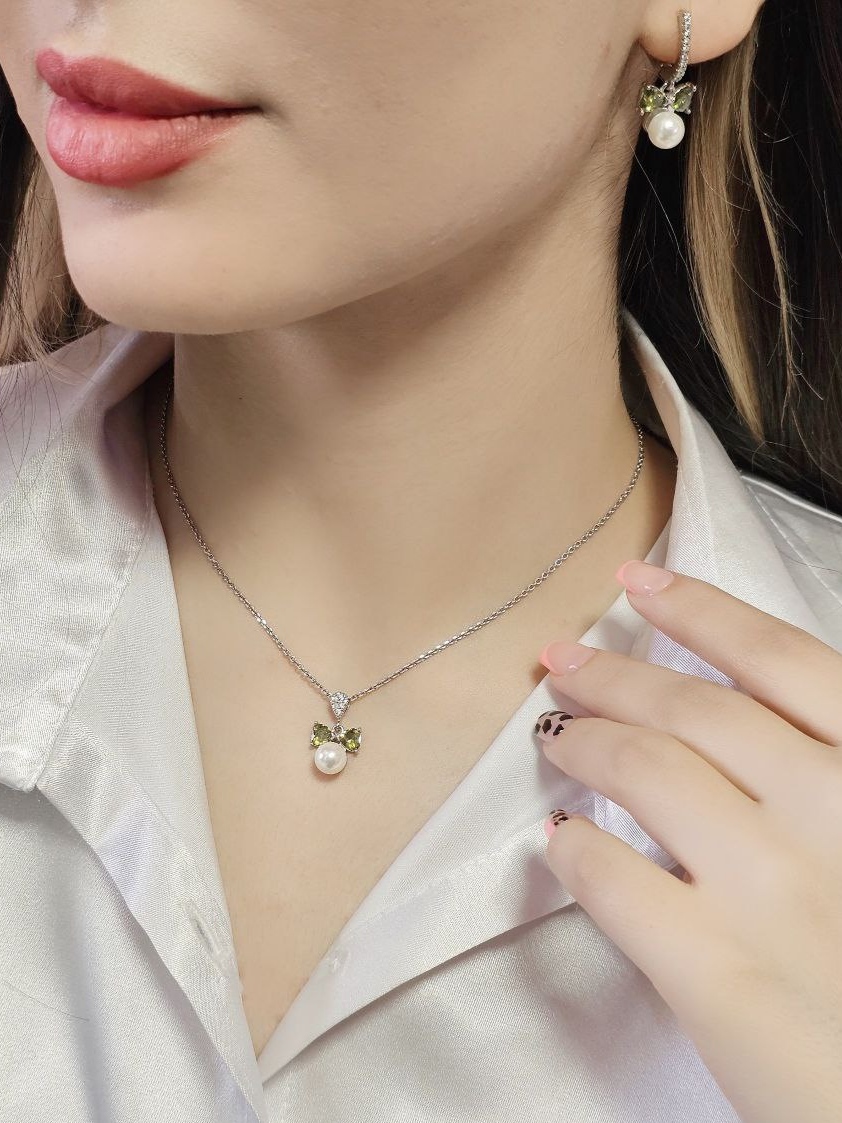 نیمست نقره جواهری دخترانه با سنگ رنگی و مروارید پرورشی