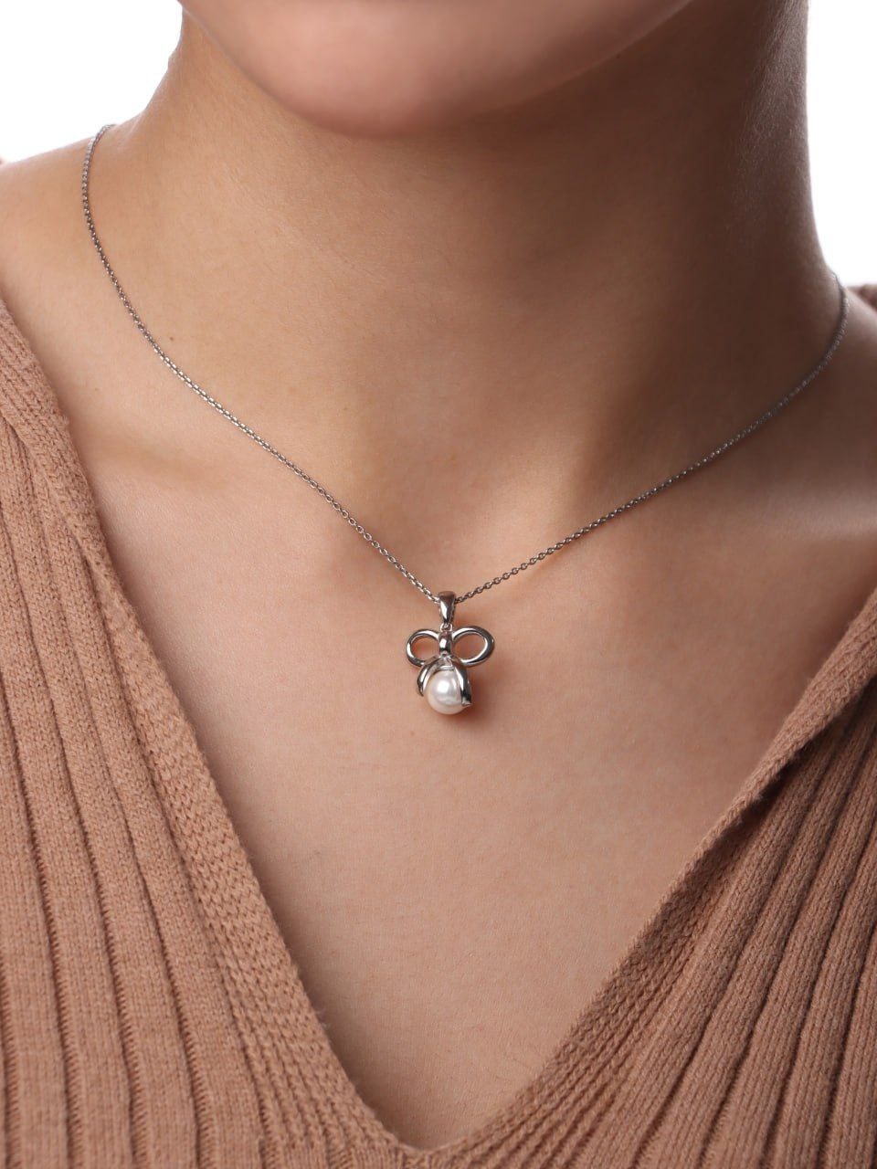 آویز پلاک نقره دخترانه طرح پاپیون و مروارید