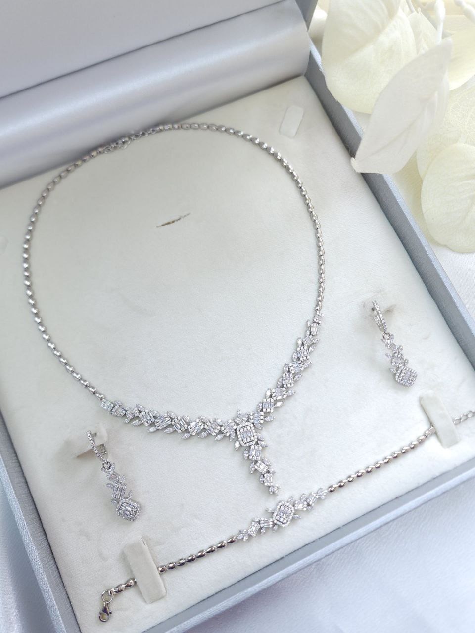 سرویس نقره جواهری زنانه طرح فلاور