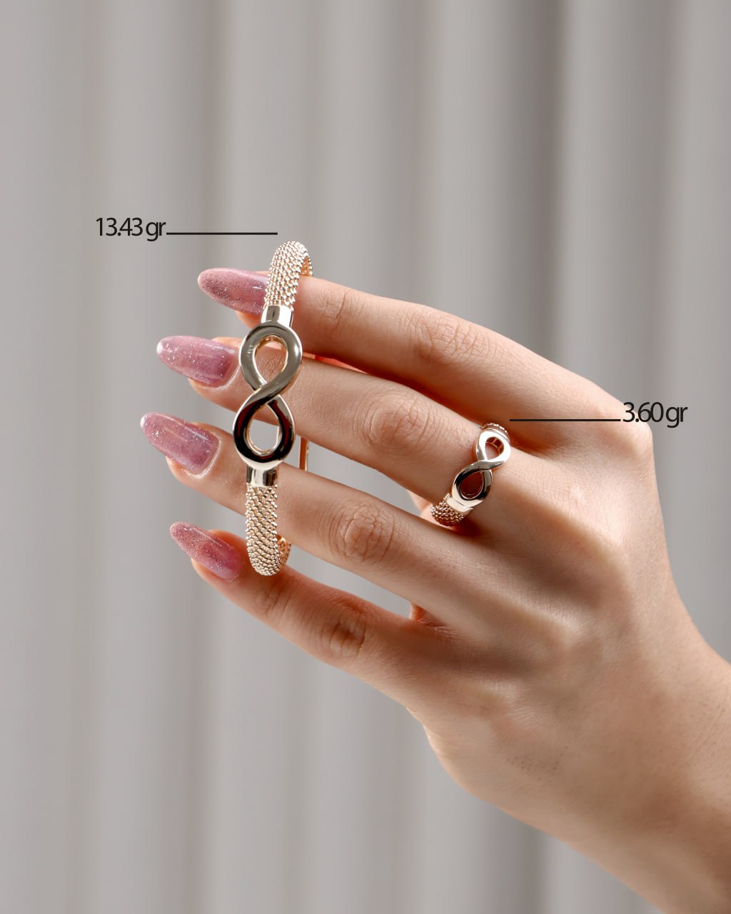 ست بنگل و انگشتر نقره زنانه طرح بینهایت