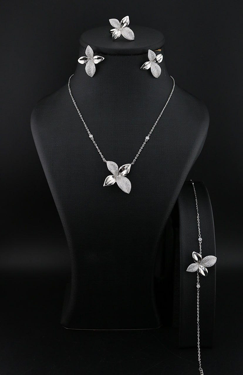 سرویس نقره جواهری زنانه طرح فلاور S14