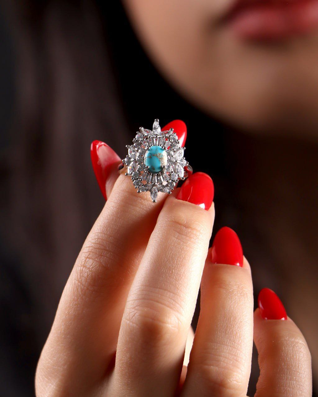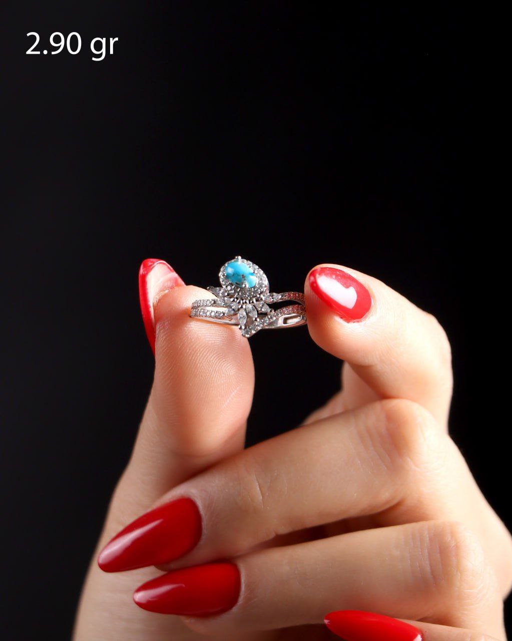 انگشتر نقره جواهری زنانه با سنگ فیروزه کدA1J32