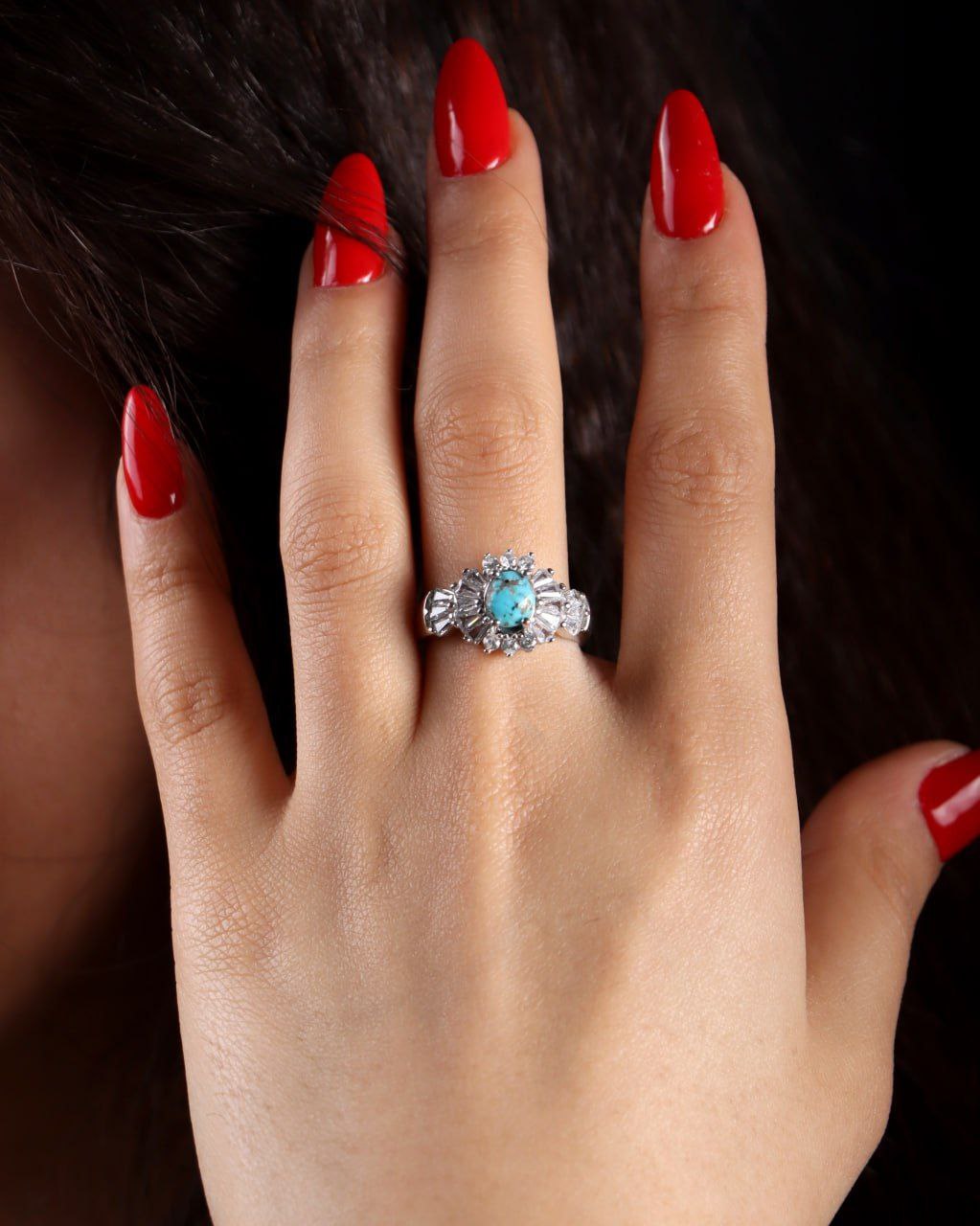 انگشتر نقره جواهری زنانه با سنگ فیروزه کد A1J34