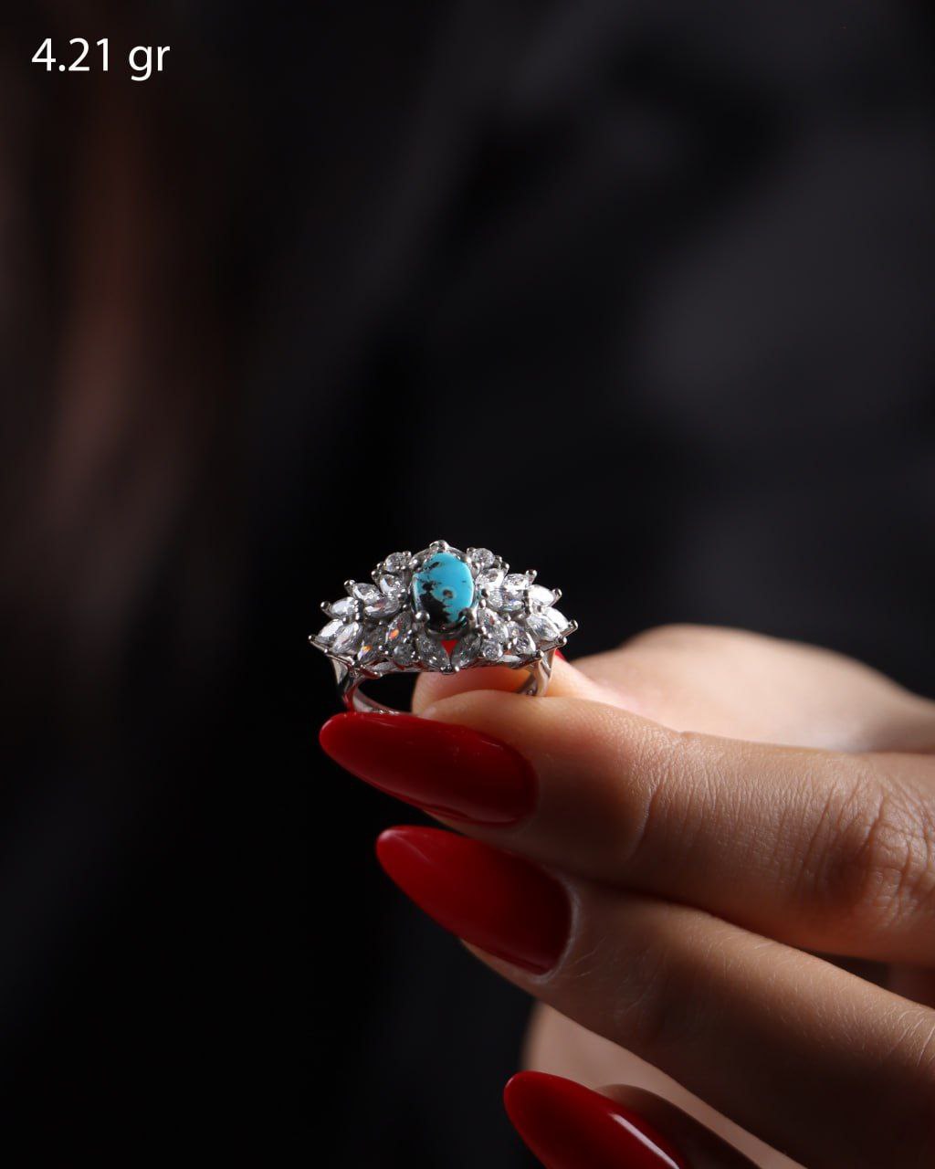 انگشتر نقره جواهری زنانه با سنگ فیروزه کد A1J33