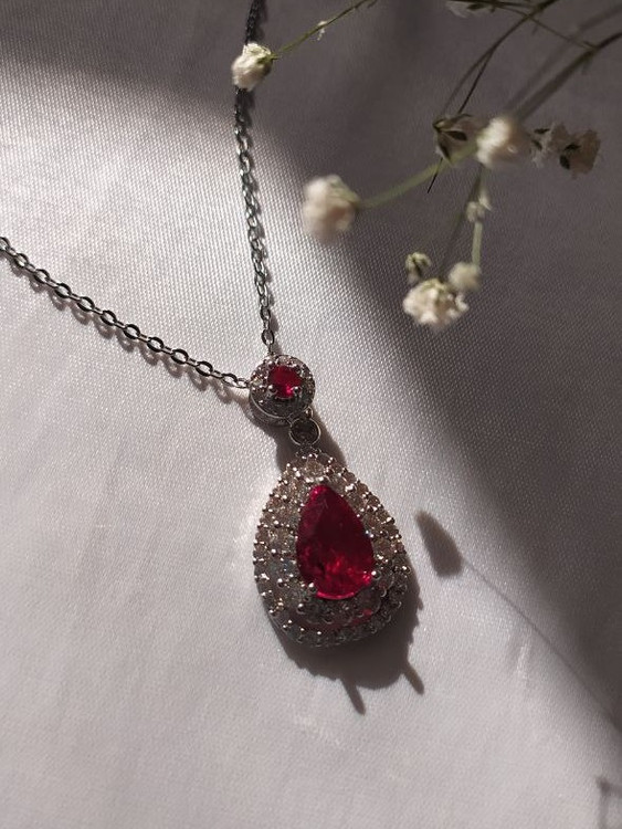 گردنبند جواهری نگین قرمز جنس استیل
