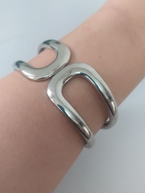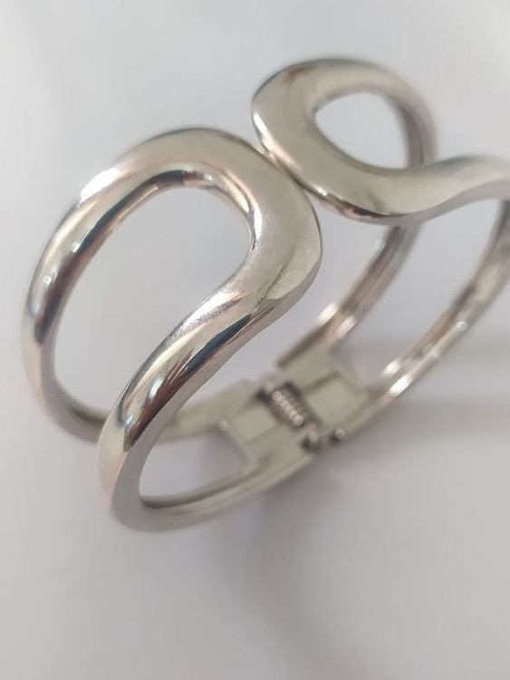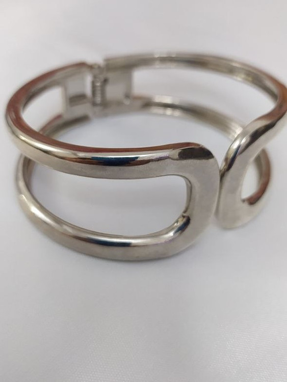 بنگل فشن آبکاری نقره ای مدلی خاص و زیبا برای استایل امروزی است این بنگل زیبا مناسب جشنها و دورهمیهای شماست و بخاطر طرح خاص و زیبایی که دارد باعث درخشش شما در هر جمعی خواهد شد.سایز بنگل مناسب دور مچ تا 18 سانت است و قفل بنگل چفتی و بسیار راحت می باشد.
