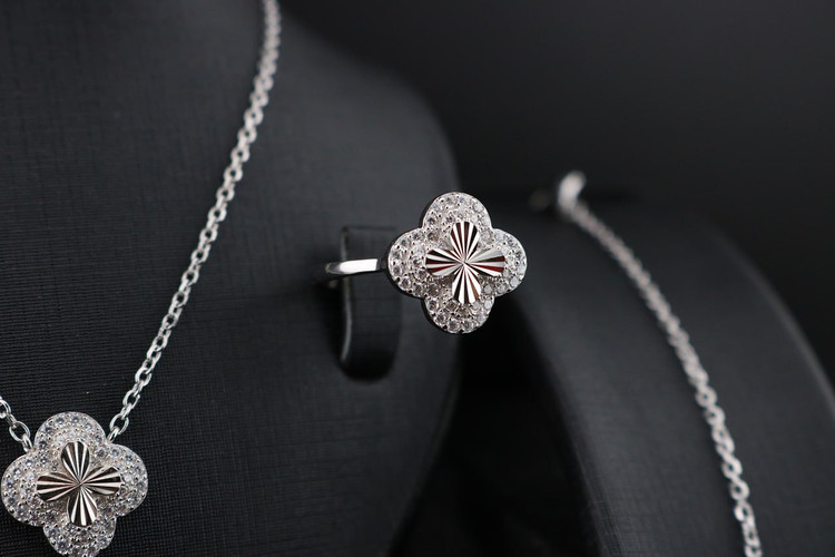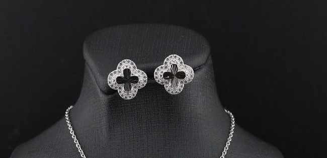 ست ونکلیف نقره جواهری وارداتی عیار۹۲۵ اصل با روکش طلای سفید