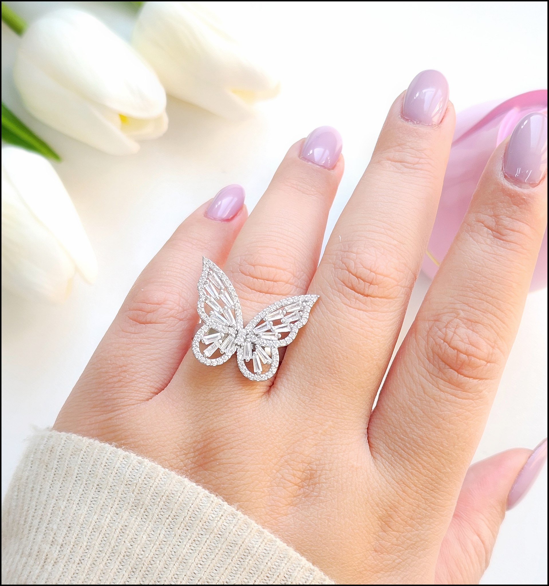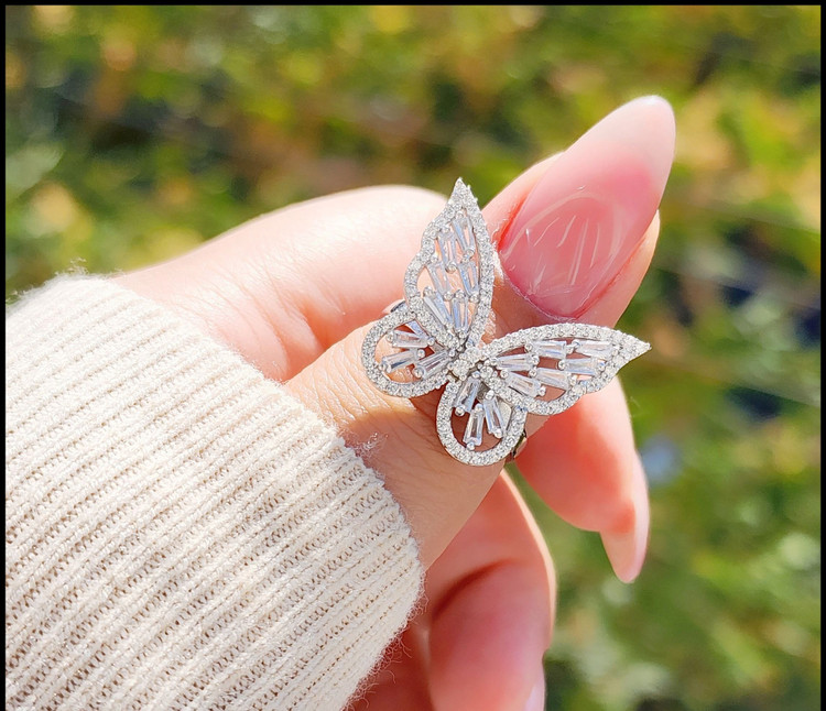 انگشتر پروانه نقره جواهری با نگین باگت کدA1J3