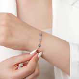 دستبند نقره زنانه چشم نظر کدD3 با عیار 925 و آبکاری درجه یک رودیوم و نگینهای باگت و زیرکونیا طرحی جذاب و امروزی برای بانوان خوش سلیقه است ظرافت ساخت جلوه ی زیبایی به این محصول داده است.قفل دستبن قفل طوطی است سایز دستبند 15 سانت با 5 سانت زنجیر تنظیم میباشد. این دستبند زیبا با فاکتور رسمی شرکت تقدیم میگردد .