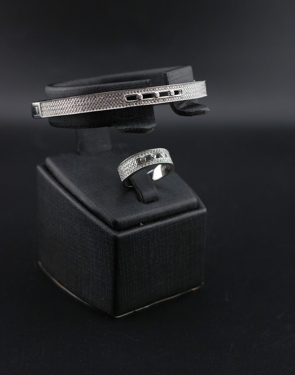 ست بنگل و انگشتر نقره جواهری کد D1SJ2
