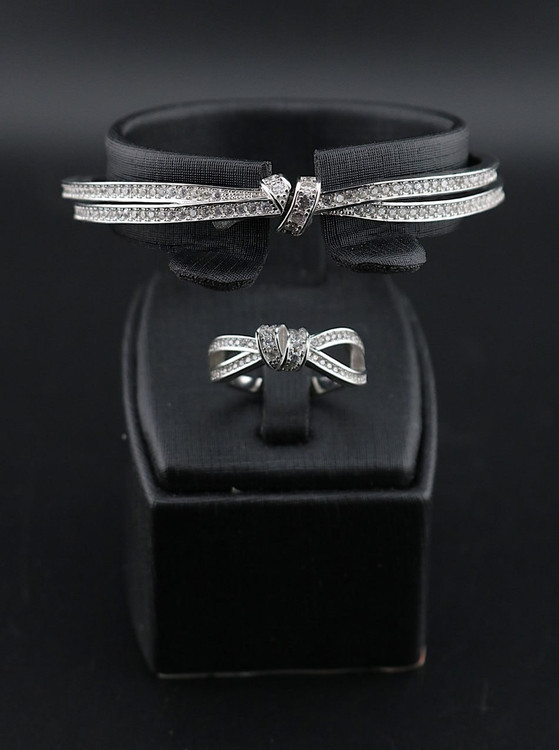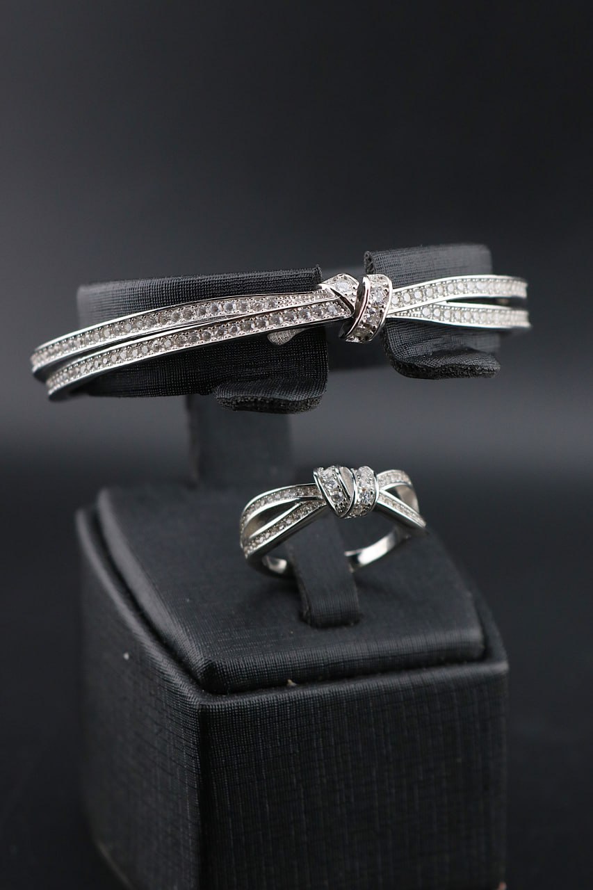 ست بنگل و انگشتر نقره جواهری مدل گره کد D1SJ3