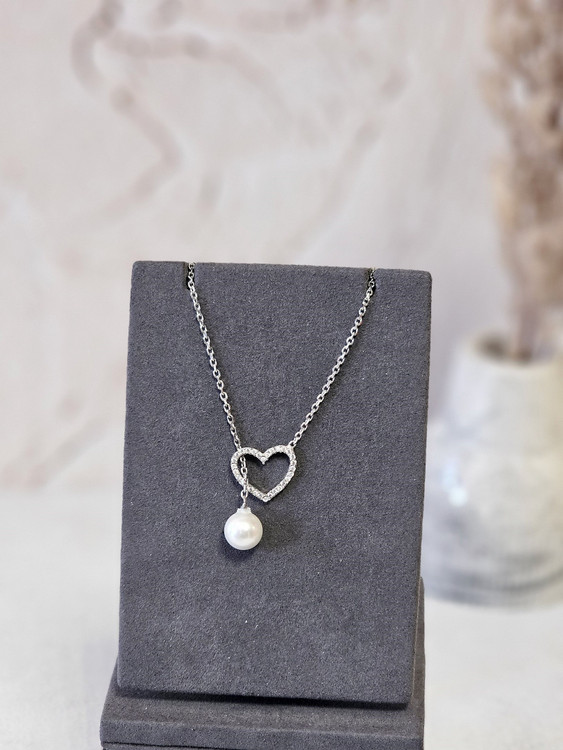 زنجیر با پلاک متصل نقره قلب و مروارید کد Z1P1