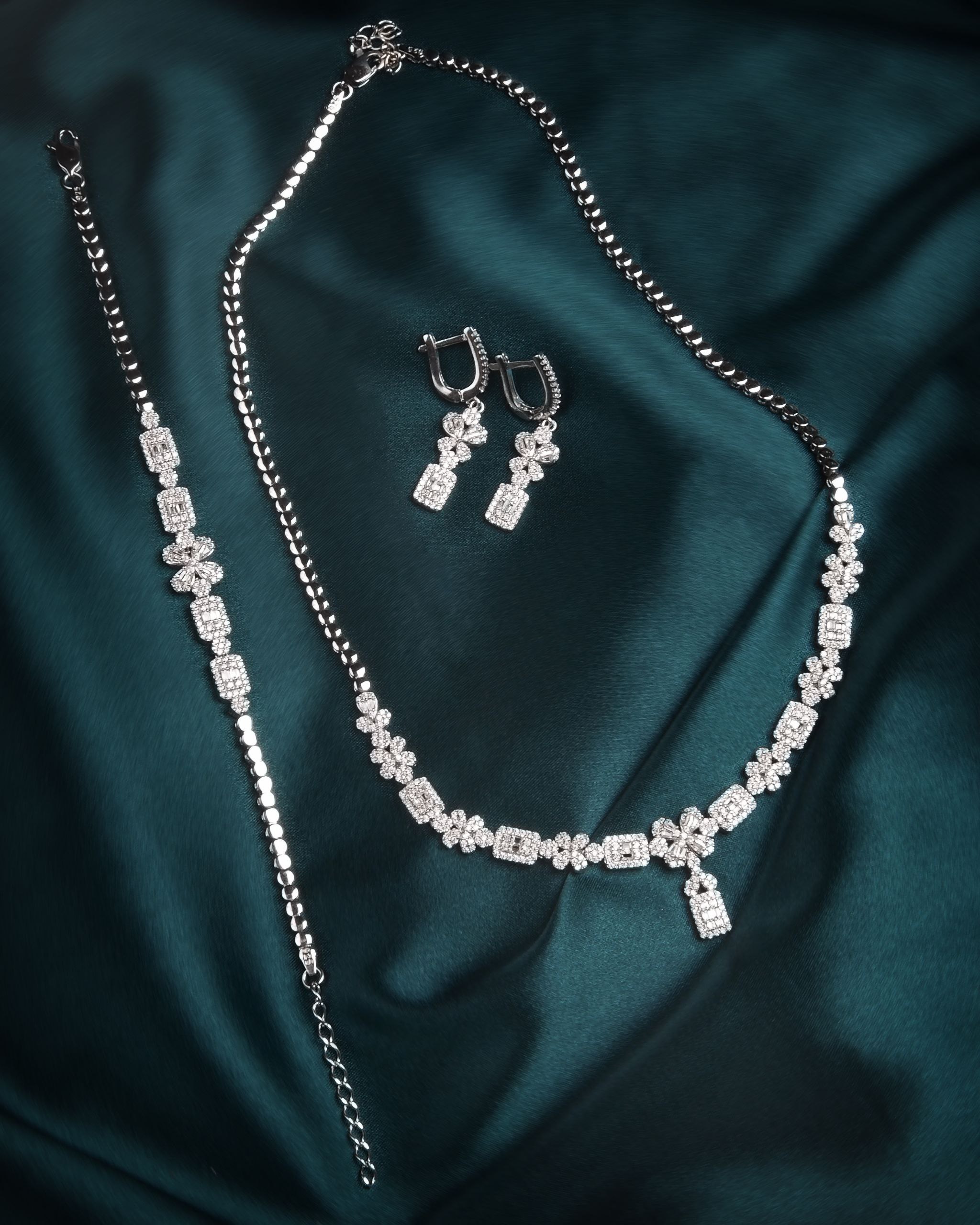 سرویس نقره جواهری زنانه مدل امرالدکات کدS4