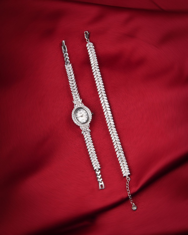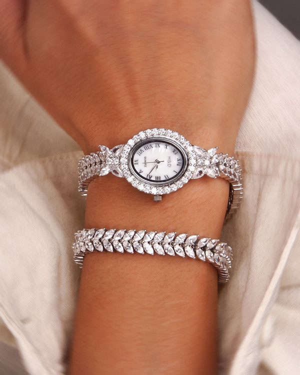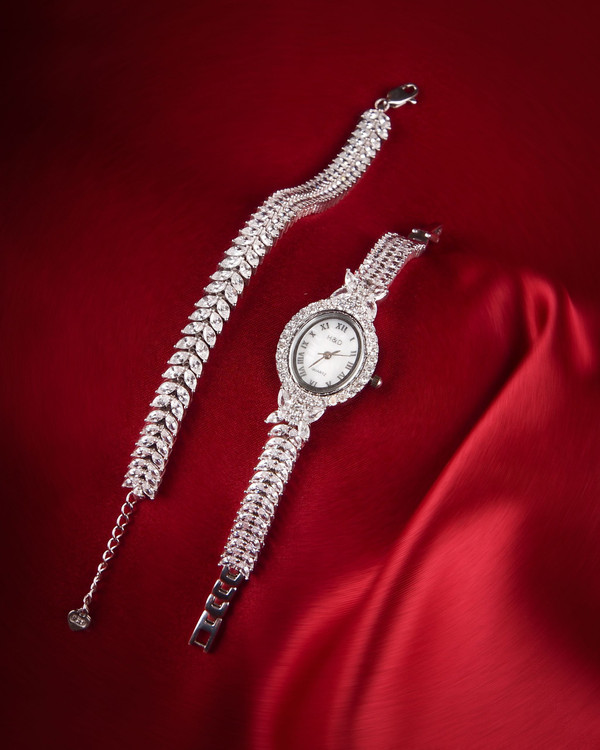 ست ساعت و دستبند نقره جواهری H&D کدW4