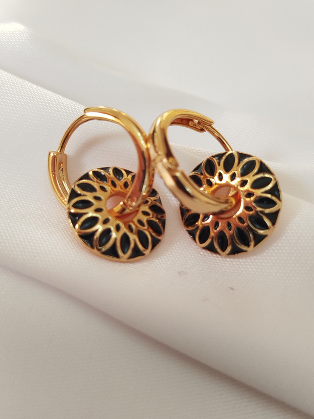 گوشواره حلقه ای مینا کاری ژوپینگ کد G1X4الیاژ مس با آبکاری طلای ۱۸ ضدحساسیت مناسب استفاده روزانه ثبات رنگ عالی به شرط مراقبت از الکل و مواد ارایشی و شوینده قوی قطر دایره 1.5سانت است