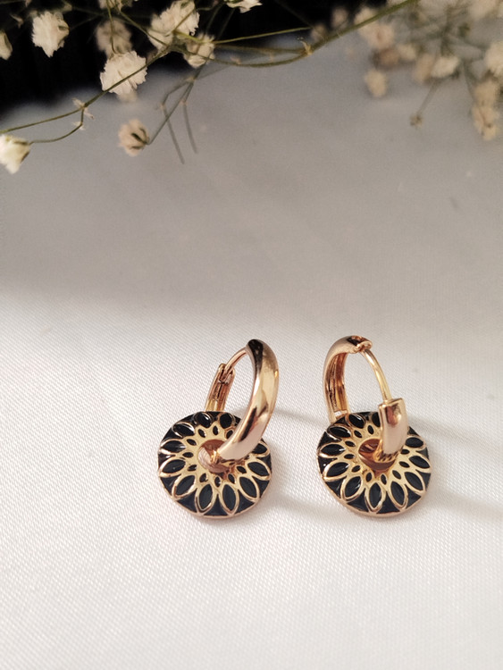 گوشواره حلقه ای آویزدار ژوپینگ با میناکاری مشکی کدG1X4