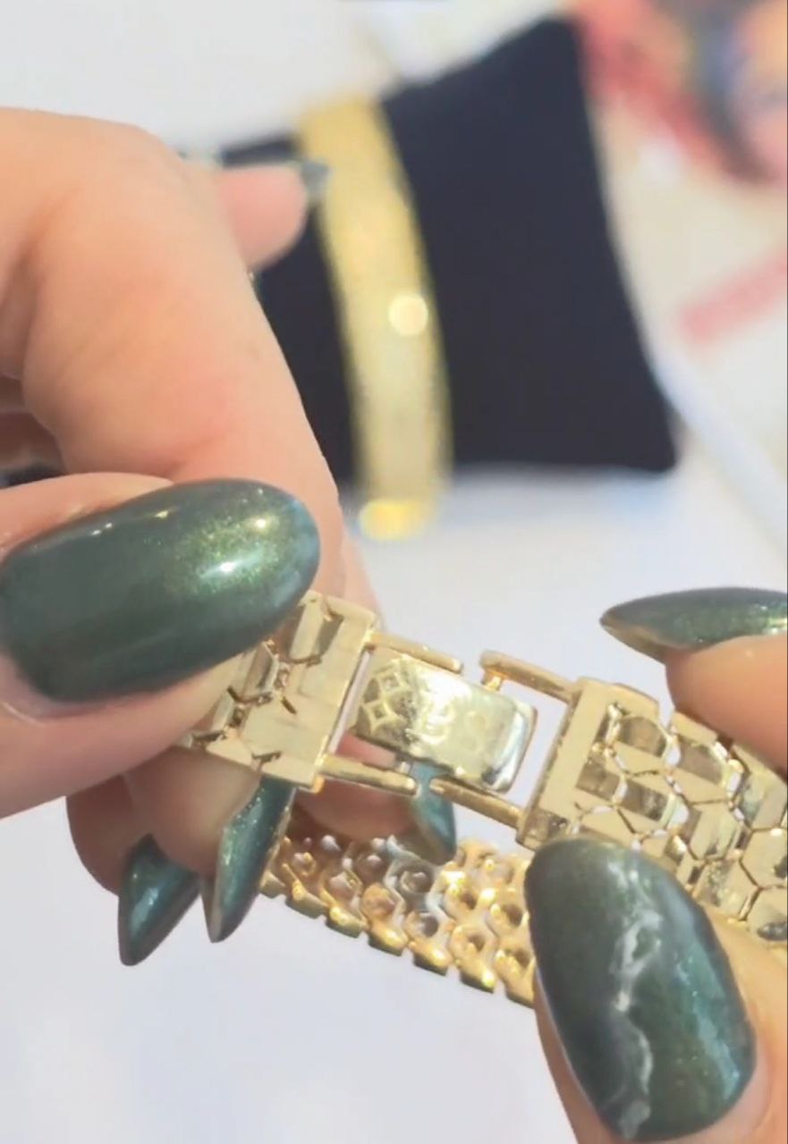 دستبند تراش نقره زنانه مدل پوست ماری کدD6 با عیار 925 و آبکاری درجه یک طلا و تراش زیبای پوست ماری طرحی جذاب و امروزی برای بانوان خوش سلیقه است ظرافت ساخت جلوه ی زیبایی به این محصول داده است.پهنای این دستبند 7 میل و دارای قفل دستبند کتابی است .سایز دستبند 18 سانت میباشد. این دستبند زیبا با فاکتور رسمی شرکت تقدیم میگردد .