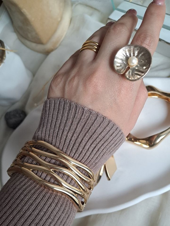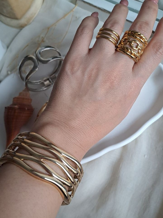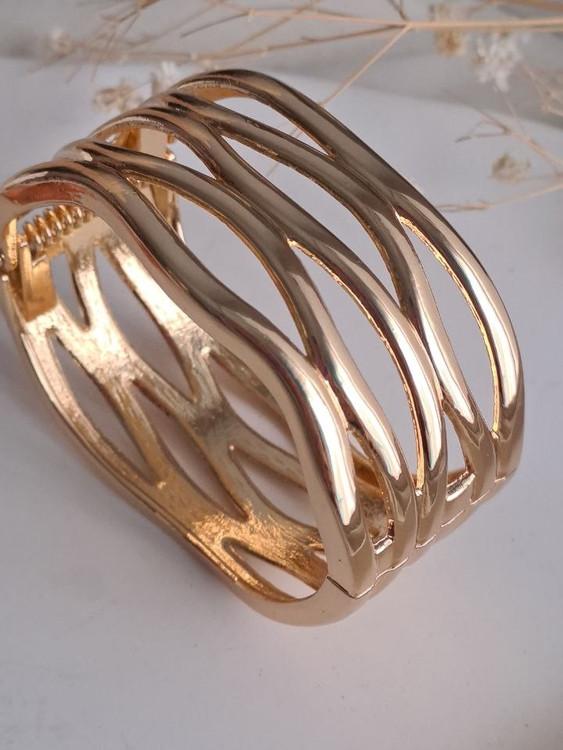 بنگل فشن آبکاری مدل موج چند لاین یکی از زیباترین بنگل های گالری نیک سیلور است این بنگل زیبا با آبکاری طلایی رنگ مدلی جذاب برای مهمانیها و دورهمیهای شماست .سایز بنگل مناسب تا دور مچ 18 سانت میباشد حالت قفل بصورت چفتی و بسیار راحت میباشد.اگر به دنبال زیورآلاتی شیک، اقتصادی و باکیفیت هستید، دستبند بدل بهترین گزینه برای شما هستند. دستبندهای بدل از متریالهای باکیفیت ساخته شدهاند و با روکشهایی مانند طلای 18 عیار یا رودیوم، درخشندگی طولانیمدتی دارند.