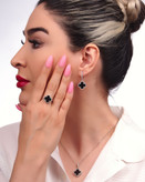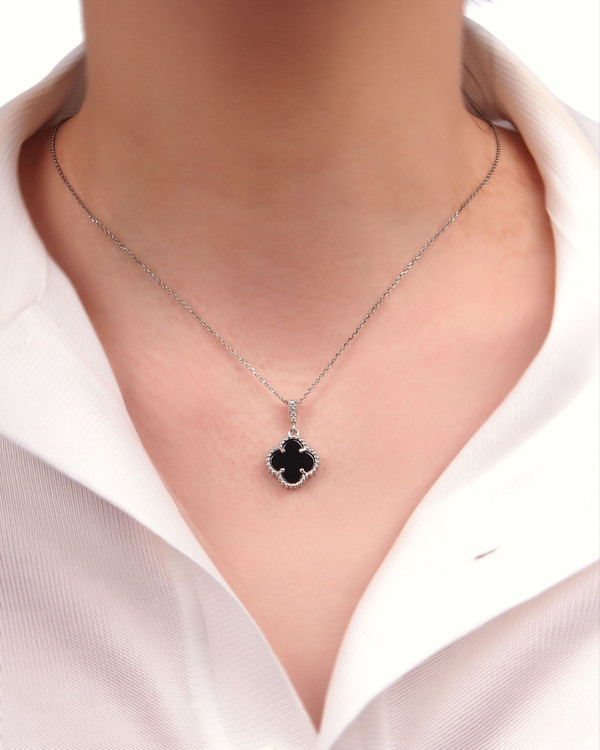 نیمست ونکلیف نقره سنگ مشکی مدل تک گل