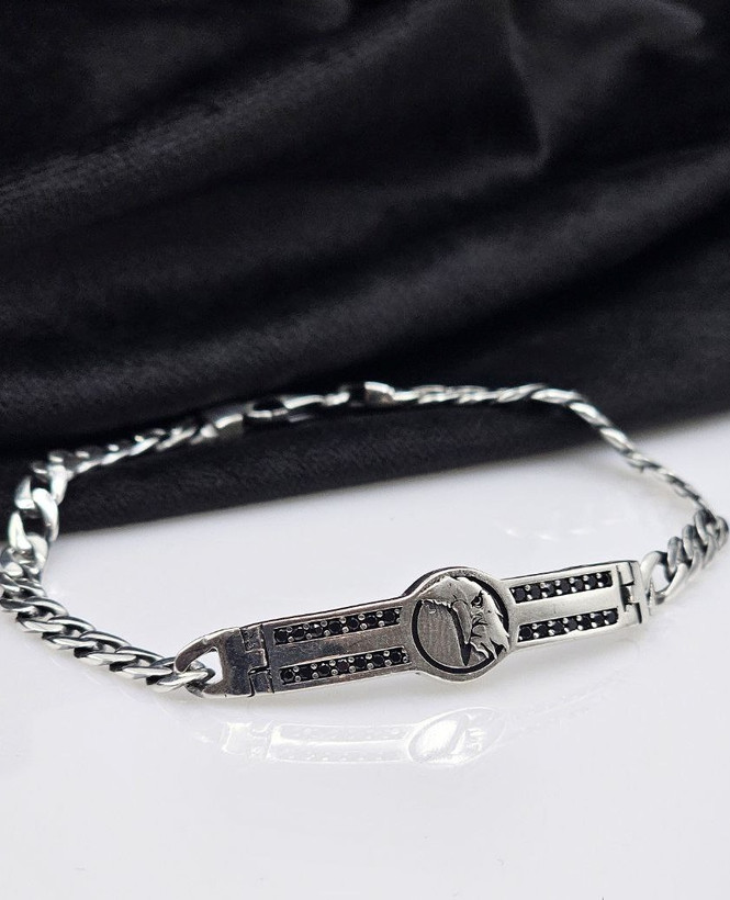 دستبند نقره مردانه پلاک دار طرح عقاب کد D1M2