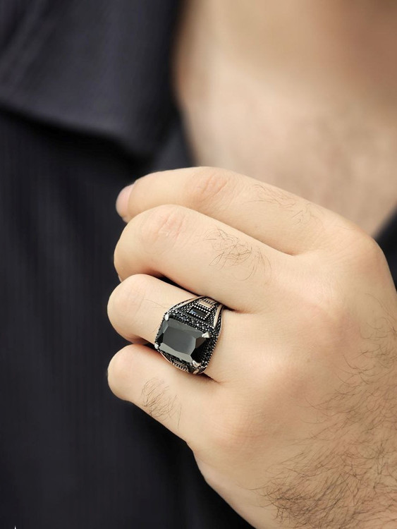 انگشتر نقره مردانه طرح سیاه قلم سنگ اونیکس کد A1M3