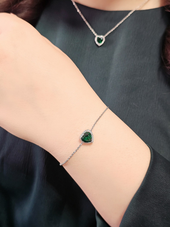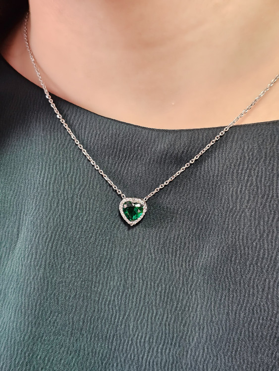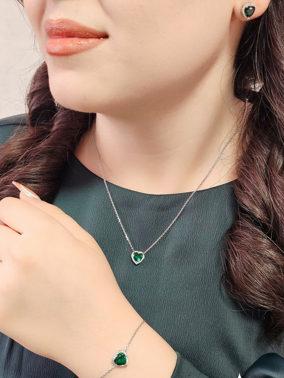 سرویس زنجیری نقره زمردی مدل قلب کدS7