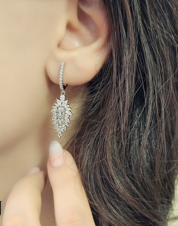 گوشواره آویز نقره جواهری با آبکاری درجه یک رودیوم مدلی مجلسی و شیک برای بانوان جوان می باشد این گوشواره زیبا مناسب استفاده روزانه و جشنها و مهمانیها میباشد