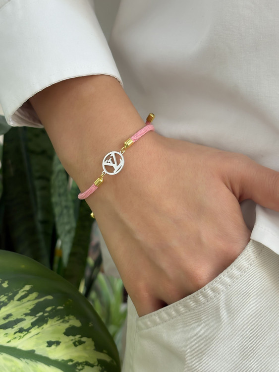 دستبند پلاک نقره لویی ویتون مدل مینیمال و فانتزی کاری شیک و دخترانه از گالری نیک سیلور است جنس کار نقره با عیار 925 و دستبند ابریشمی میباشد این دستبند زیبا مناسب استفاده روزمره میباشد و استایلی شیک و مینیمال به شما میدهد