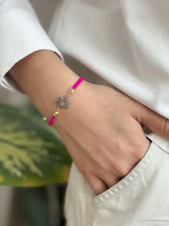 دستبند پلاک نقره گل مدل مینیمال و فانتزی کاری شیک و دخترانه از گالری نیک سیلور است جنس کار نقره با عیار 925 و دستبند ابریشمی میباشد این دستبند زیبا مناسب استفاده روزمره میباشد و استایلی شیک و مینیمال به شما میدهد