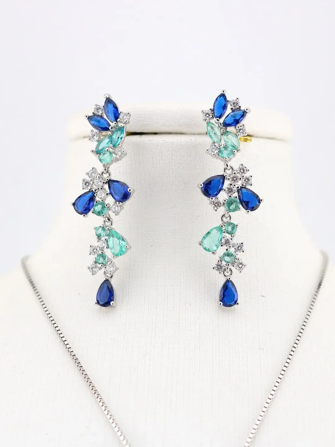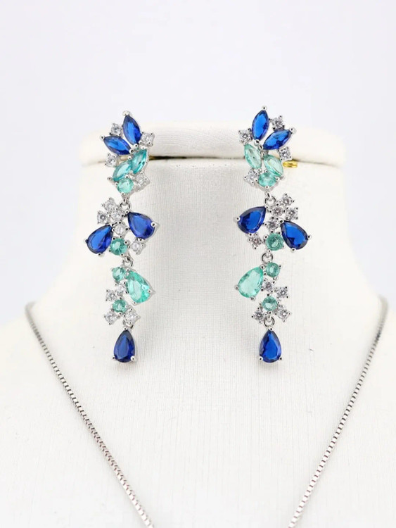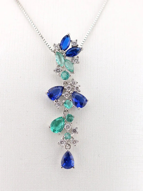 نیمست زیبا با سنگ یاقوت کبود و اوپال اقیانوسی. عیار صل با آبکاری درجه یک رودیوم (طلای سفید). وزن نیمست بدون زنجیر ۱۰.۲ گرم و وزن زنجیر از ۲.۵ گرم است