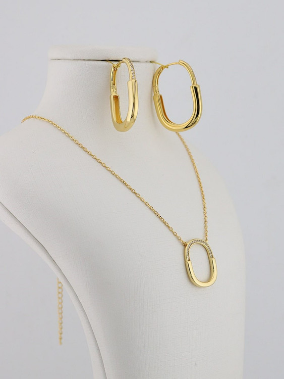 نیمست تیفانی نقره از جنس نقره با عیار 925 با آبکاری چند لایه طلا همراه با نگینهای زیرکونیا کاری زیبا ودرخشان از گالری نیک سیلور است این نیمست زیبا مناسب استفاده روزمره و مهمانیها و جشنها ست قفل گوشواره به صورت چفتی و راحت است زنجیر این کار به پلاک متصل می باشد