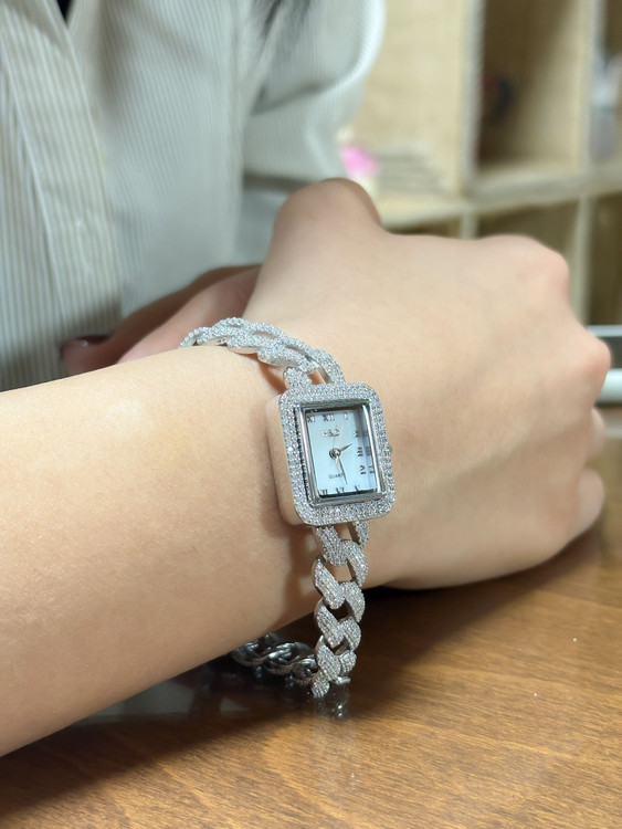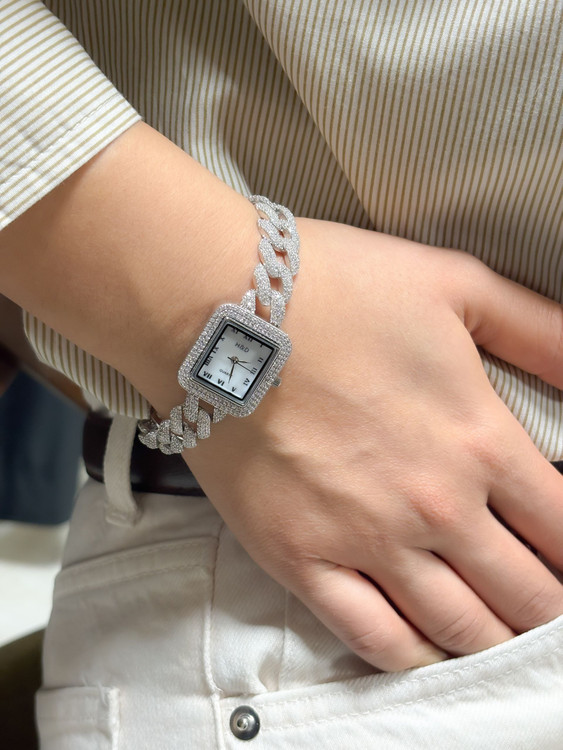 ساعت نقره جواهری کارتیر برند H&Dکد W7صفحه مربع سفید دارای موتور ژاپن با دوسال گارانتی یکی از ساعتهای زیبای مجموعه نیک سیلور است نگینهای این ساعت زیبا زیرکونیا میباشد این ساعت دارای بند تنظیم و قفل کتابی محکم است برای درخشش و جلای کار آبکاری رودیوم انجام شده است که بدون حساسیت است