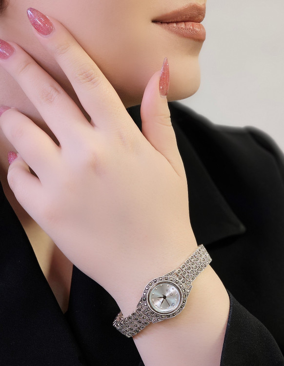 ساعت نقره زنانه مدل مارکازیت برند ROSE کدW10 یکی از خاصترین و ماندگارترین انتخابها برای افرادی است که به کیفیت، اصالت و طراحی هنری اهمیت میدهند. این ساعت لوکس با استفاده از نقره استرلینگ عیار 925 ساخته شده و با تکنیک ظریف سیاهقلم تزئین شده است؛ سبکی که به آن جلوهای آنتیک و بیهمتا میبخشد.