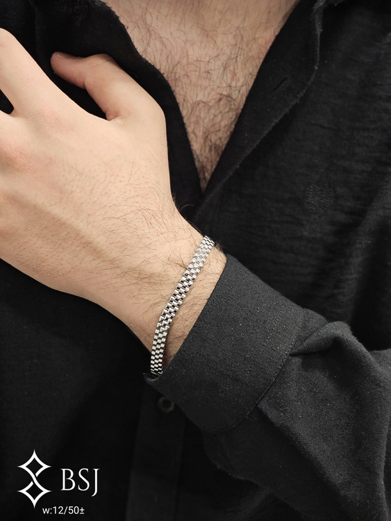 دستبند مردانه نقره 925 طرح رولکس با آبکاری رودیوم می باشد و از لحاظ رنگ مشابه طلا سفید می باشد. این دستبند زیبای مردانه طول 19 سانتی متری دارد و قفل قرار گرفته شده روی آن از نوع تاشو می باشد. این دستبند زیبا را می توان با ساعت برند رولکس نیز ست کرد و یک هدیه ارزشمند مردانه برای هدیه دادن به همسر، دوست، نامزد و … می باشد.