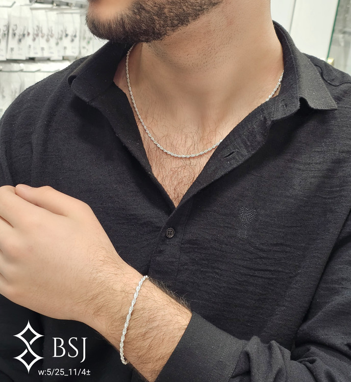 ست زنجیر و دستبند نقره طرح طنابی