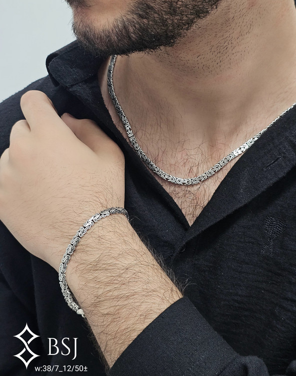 ست زنجیر و دستبند نقره مردانه طرح کرال