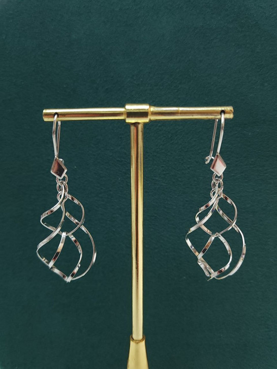 گوشواره آویز نقره با آبکاری طلای سفیدو زرد و طراحی و ظرافت دقیقا مشابه نمونه طلا است قفل این گوشواره مدل عصایی میباشد ومناسب استفاده روزمره شماست