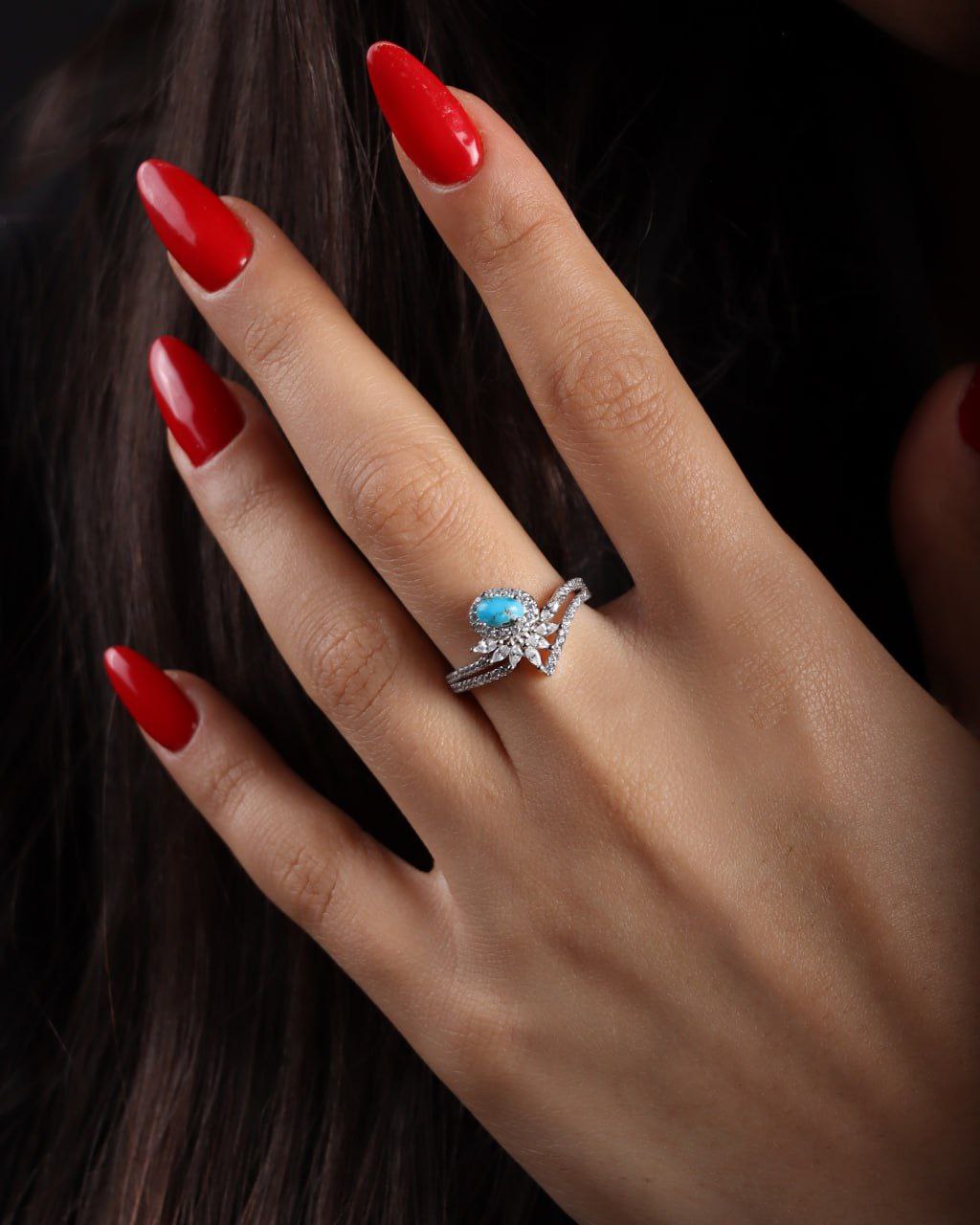 انگشتر نقره جواهری زنانه با سنگ فیروزه کدA1J31
