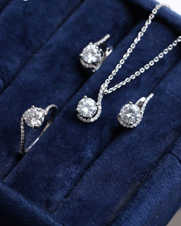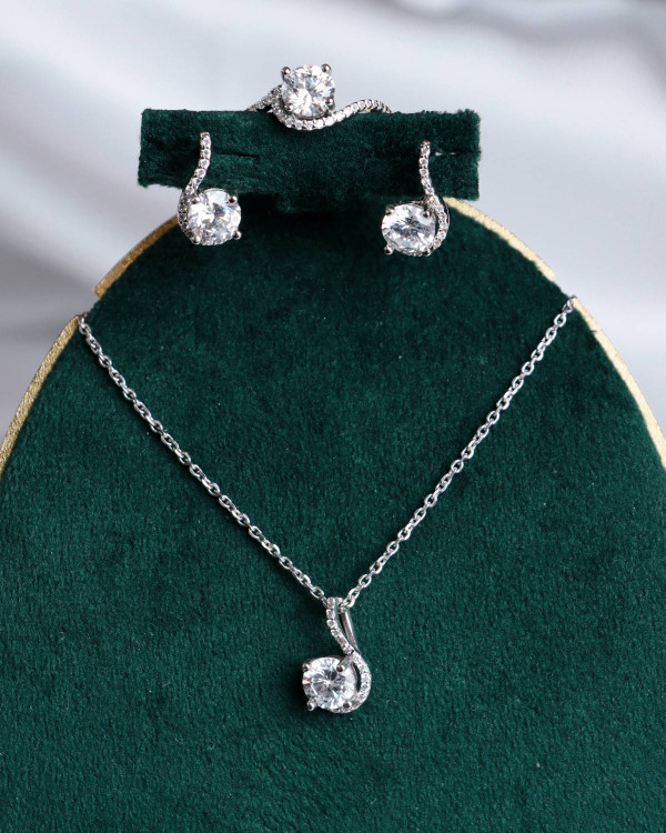 نیمست نقره جواهری زنانه مدل تک نگین مدلی جذاب و ظریف از گالری نیک سیلور است این نیمست شامل پلاک یک جفت گوشواره و انگشتر می باشد قفل گوشواره کلیپسی و بسیار راحت است