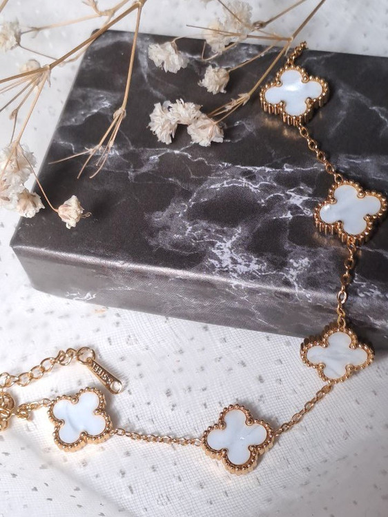 دستبند ونکلیف با طراحی الهامگرفته از برند معروف Van Cleef & Arpels، ترکیبی از ظرافت و درخشش است.