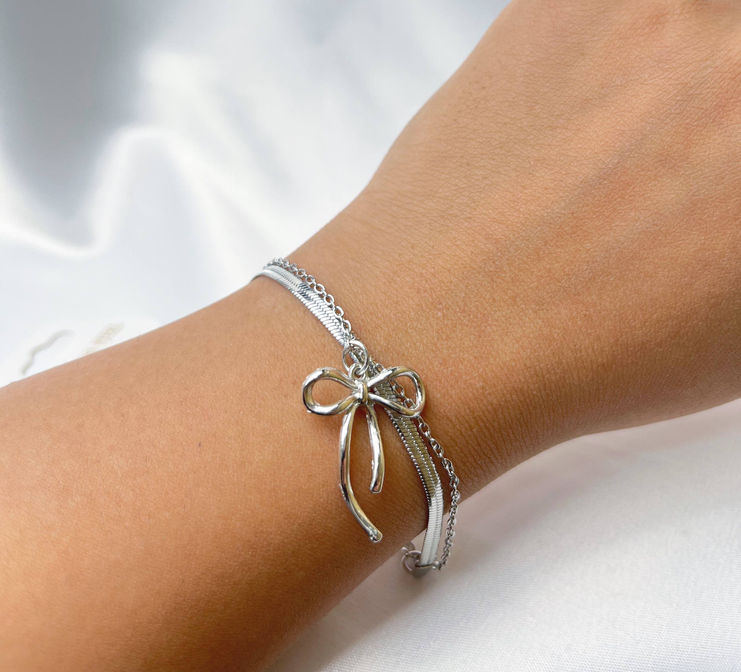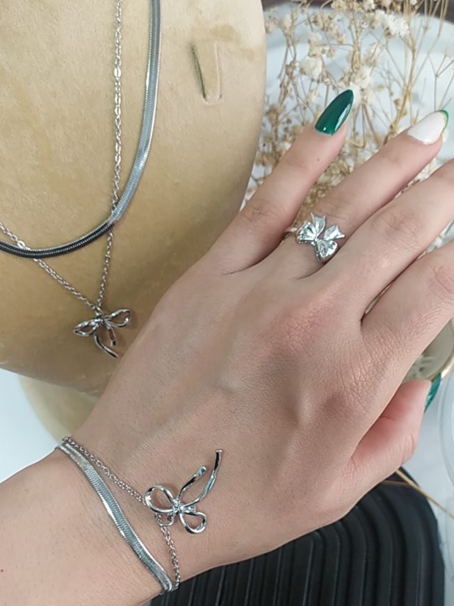 دستبند زنانه مدل دولاین پاپیون جنس استیل