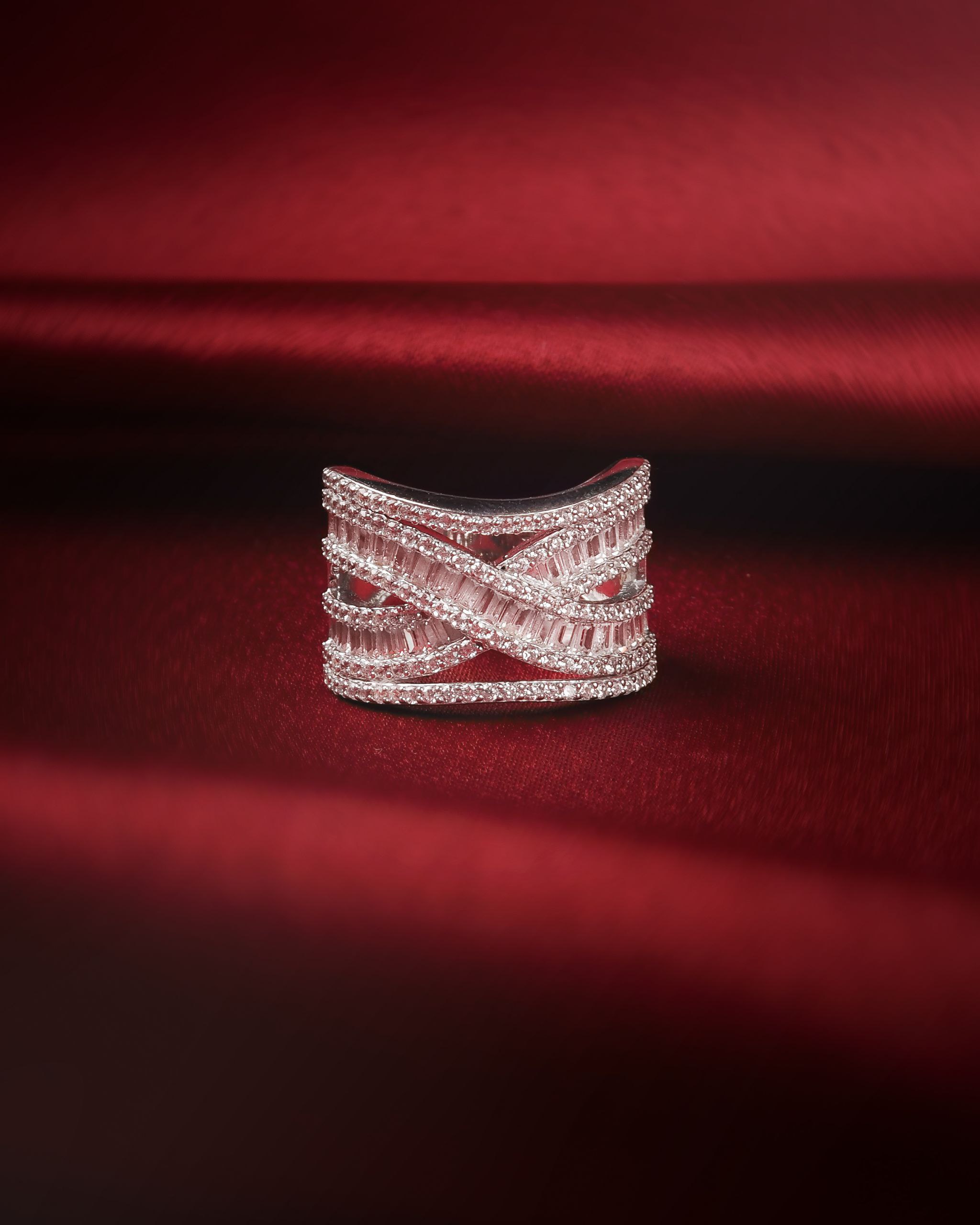 انگشتر نقره جواهری مدل ضربدری کد A1J20